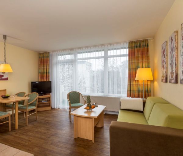 Op slechts 150 meter van het strand op een schitterend vakantiecomplex gelegen appartement voor 2, 4 en 6 personen te huur in Weissenhauser Strand bij Oldenburg in Holstein, Oostzee, Duitsland. Vakantiepark met zwembad en strand.