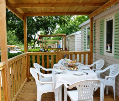 Deze Camping Village Salinello Tortoreto Lido Abruzzen Mobilhomes (type Happy Premium) beschikken over 3 slaapkamers, 1 met een 2-pers. bed, 1 met twee 1-pers. bedden en 1 met een stapelbed. Verder beschikt dit type over een badkamer met douche, wastafel, bidet en toilet, een woongedeelte met (1-pers. slaap-)sofa, tafel, tv en airco en een goed uitgeruste keuken met kookplaat, koelkast met vriesvak en magnetron. Voor buiten beschikt u over een overdekte veranda met tuinmeubilair. Huisdieren zijn niet toegestaan.