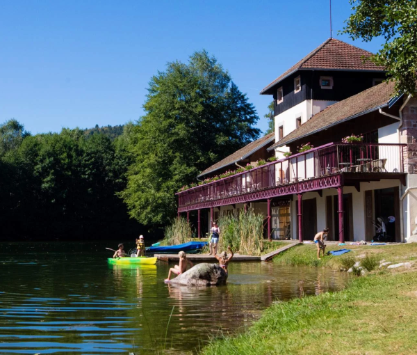 Direct aan een prachtig meer gelegen camping met mobilhomes voor 4 - 6 personen te huur op Camping Domaine des Messires in Herpelmont, Grand-Est-Elzas-Vogezen in het noordoosten an Frankrijk. Camping aan meer in de Vogezen.