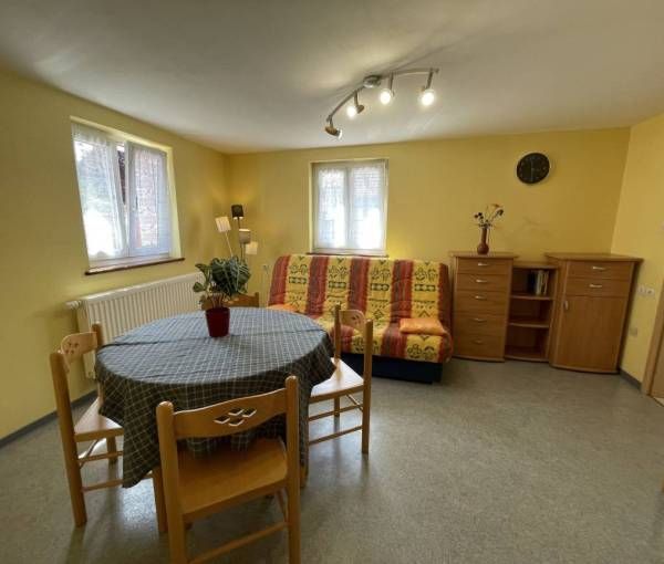 Appartement Jaune et Rose Marckolsheim Grand-Est-Elzas-Vogezen beschikt over: woon-/eetkamer met een 2-pers. divanbed, gratis WIFI en TV. Een slaapkamer met 2 bedden. Kookhoek, voorzien van een koelkast, 2-pits kookplaat en mini-oven. Douche/Toilet. Centrale verwarming. Ter beschikking: wasmachine.