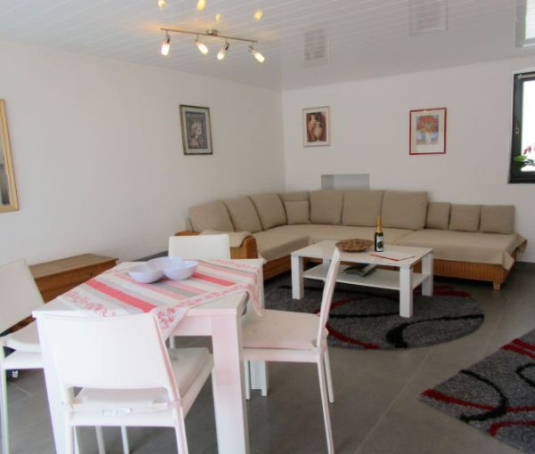 Appartement Plath Nennig Rijnland Palts Saarland Duitsland beschikt over 2 kamers (50 m2), op de begane grond: woon-/eetkamer met een 2-pers. divanbed en flatscreen TV, stereo-installatie en DVD-speler. Een 2-pers. slaapkamer. Kookhoek, voorzien van een 2-pits kookplaat, vaatwasser, magnetron en een elektrische koffiemachine. Douche, wastafel en toilet. Ter beschikking: kluis, strijkijzer en internet. Het appartement beschikt over een eigen ingang en een zitplaats voor buiten met tuinmeubelen en is geschikt voor 2 - 4 personen.