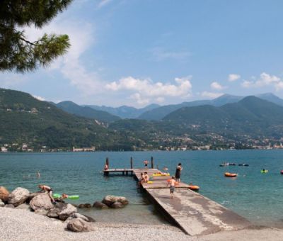 De Villaggio Eden San Felice del Benaco Gardameer Mobilhomes liggen aan de geliefde westelijke oever van het Gardameer. De mobilhomes liggen op een hoger gelegen helling, met uitzicht op het meer. Via een trap komt u op het privé-strand van de camping, waar u heerlijk kunt luieren of wandelen, bijvoorbeeld naar de plezierhaven. Uiteraard kunt u hier terecht voor het huren van surfplanken, zeilboten en waterski's.