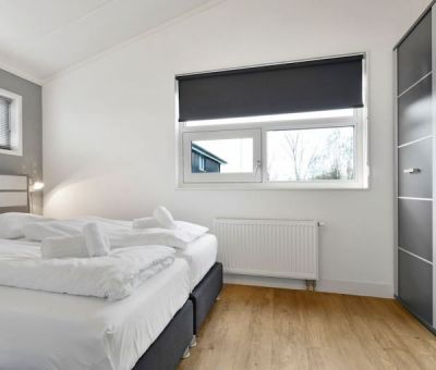 Deze mooie geschakelde Waterpark Oan 'e Poel Terherne Friesland Bungalow type 4-6C beschikt over: woonkamer met open keuken met een vaatwasser, koffiezetapparaat, koelkast met vriesvak en combimagnetron. Twee slaapkamers met elk twee 1-pers. boxspringbedden en een slaapkamer met een stapelbed. Badkamer met douche, wastafel en toilet. Wasmachine. Apart toilet.